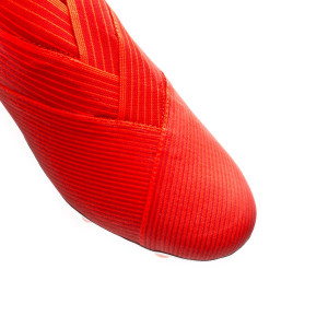La carcasa de la nueva generación de adidas Nemeziz mantiene la tecnología Agilitybandage que es la encargada de abrazar el puente del pie para conseguir que la fijación sea total, 360. Como siempre todo va cubierto por una película sintética ultrafina encargada de proteger e impermeabilizar la bota para que no absorba agua y en contacto con el balón no se produzca deslizamientos inoportunos.